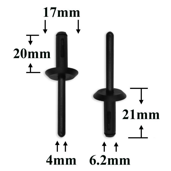 Пластиковые заклепки для FORD, используются для крепления салонных панелей, декоративных накладок, карманов, бардачков, внутренней обивки, а также в местах, где нецелесообразно применять металлические крепежи.