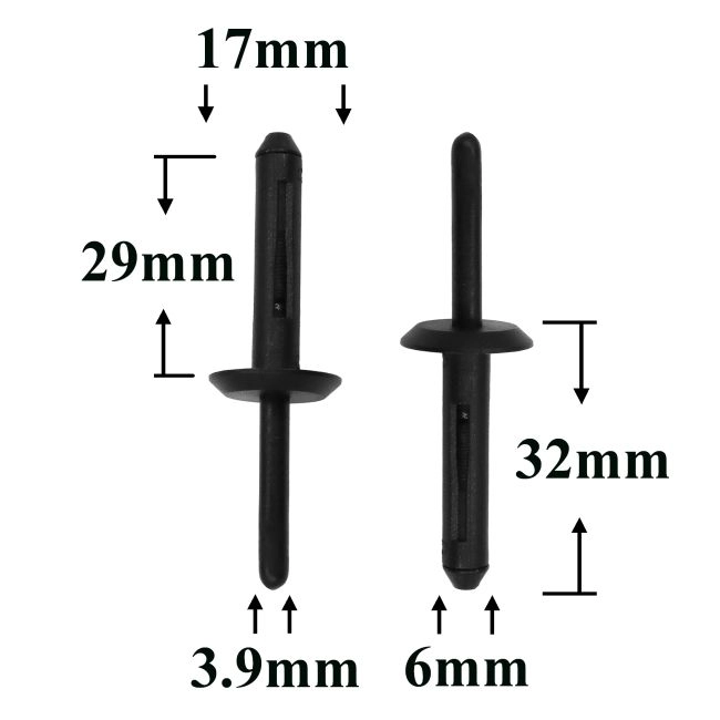 Пластиковые заклепки для OPEL JEEP GM FORD DODGE DAEWOO CHRYSLER BMW CHEVROLET используются для крепления салонных панелей, декоративных накладок, карманов, бардачков, внутренней обивки, а также в местах, где нецелесообразно применять металлические крепежи.