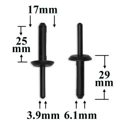 Пластиковые заклепки для CHRYSLER, OPEL, JEEP GM, DODGE, DAEWOO, CHEVROLET, используются для крепления салонных панелей, декоративных накладок, карманов, бардачков, внутренней обивки, а также в местах, где нецелесообразно применять металлические крепежи.