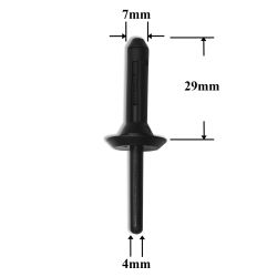 Пластиковые заклепки для CHRYSLER, OPEL, JEEP GM, DODGE, DAEWOO, CHEVROLET, используются для крепления салонных панелей, декоративных накладок, карманов, бардачков, внутренней обивки, а также в местах, где нецелесообразно применять металлические крепежи.