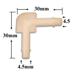 Соединитель трубок угловой GM, CHRYSLER, DODGE, Jeep — элемент автомобильного крепежа, предназначенный для соединения и восстановления магистралей подачи жидкости в системе стеклоомывателя. Данный соединитель применяется на автомобилях OPEL, CHEVROLET, CHRYSLER, DAEWOO, DODGE, GM, JEEP и используется как аналог штатного оригинального соединителя.