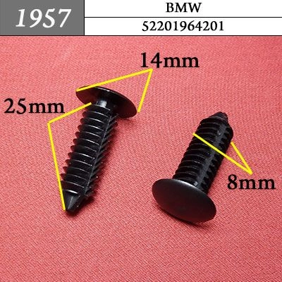 OEM: 52201964201. Марка: BMW. Модель: 1-series E81 (2007 - 2012), 1-series E82 (2007 - 2013), 1-series E87 (2004 - 2012), 1-series E88 (2008 - 2013), 1-series F20 (2007 - 2017), 1-series F21 (2011 - 2017), 3-series E36 (1990 - 1998), 3-series E46 (1998 - 2005), 3-series E90 (2005 - 2012), 3-series E91 (2006 - 2013), 3-series E92 (2005 - 2013), 3-series E93 (2007 - 2013), 3-series F30 (2011 - 2018), 3-series F31 (2012 - 2018), 3-series F34 (2013 - 2018), 3-series F35 (2012 - 2018), 3-series F80 (2011 - 2018), 5-series E34 (1989 - 1995), 7-series E32 (1987 - 1992), 7-series E38 (1994 - 2001), 7-series G11 (2015 - 2018), 7-series G12 (2015 - 2018), X1 E84 (2009 - 2018), X3 E83 (2003 - 2018), X3 F25 (2003 - 2018), X4 F26 (2014 - 2018), X5 E53 (1999 - 2006), Z4 E85 (2002 - 2016), Z4 E89 (2009 - 2016). Место установки: Салон. Элементы: Облицовка. Дополнительно: Крепление внутренней отделки ,