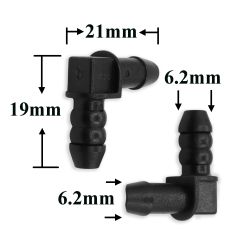 Соединитель трубок угловой 6.2мм — элемент автомобильного крепежа, предназначенный для соединения и восстановления магистралей подачи жидкости в системе стеклоомывателя. Данный соединитель применяется на автомобилях и используется как аналог штатного оригинального соединителя.