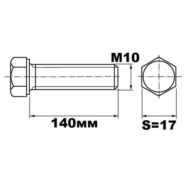 Болт М10х140 DIN933 кл.п. 8.8 оцинкованный SW 17