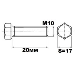 Болт М10х20 DIN933 кл.п. 8.8 оцинкованный SW 17