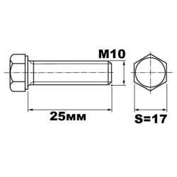Болт М10х25 DIN933 кл.п. 10.9 оксидированный SW 17