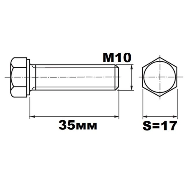 Болт М10х35 DIN933 кл.п. 8.8 оцинкованный SW 17
