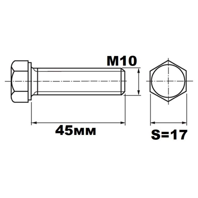 Болт М10х45 DIN933 кл.п. 8.8 оцинкованный SW 17