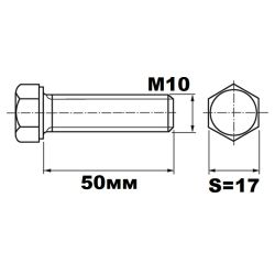 Болт М10х50 DIN933 кл.п. 10.9 оксидированный SW 17