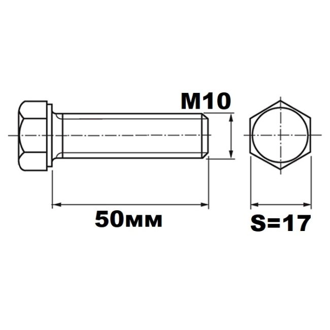 Болт М10х50 DIN933 кл.п. 8.8 оцинкованный SW 17