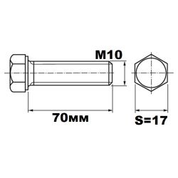Болт М10х70 DIN933 кл.п. 10.9 оксидированный SW 17