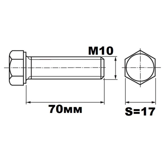 Болт М10х70 DIN933 кл.п. 10.9 оксидированный SW 17 с шестигранной головкой из нержавеющей стали применяется на промышленных производствах, в строительстве, ремонте грузового транспорта и сельхоз оборудования.