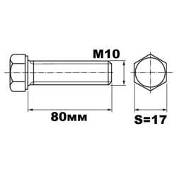 Болт М10х80 DIN933 кл.п. 8.8 оцинкованный SW 17 с шестигранной головкой из нержавеющей стали применяется на промышленных производствах, в строительстве, ремонте грузового транспорта и сельхоз оборудования.