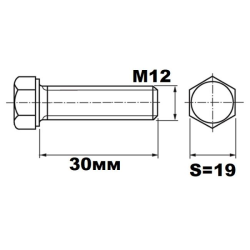 Болт М12х30 DIN933 кл.п. 10.9 оксидированный SW 19