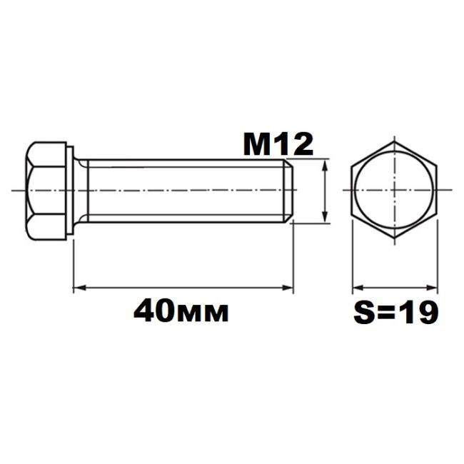 Болт М12х40 DIN933 кл.п. 8.8 оцинкованный SW 19