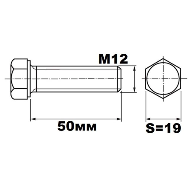 Болт М12х50 DIN933 кл.п. 10.9 оксидированный SW 19
