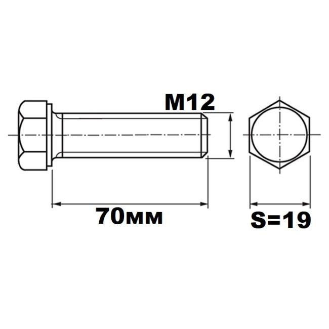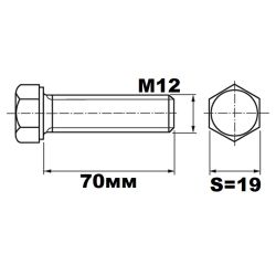 Болт М12х70 DIN933 кл.п. 10.9 оксидированный SW 19