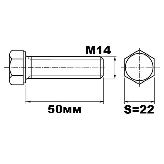 Болт М14х50 DIN933 к.п. 8.8 оцинкованный SW 22 с шестигранной головкой из нержавеющей стали применяется на промышленных производствах, в строительстве, ремонте грузового транспорта и сельхоз оборудования.