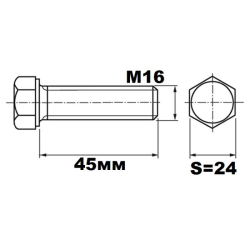 Болт М16х45 DIN933 кл.п. 8.8 оцинкованный SW 24
