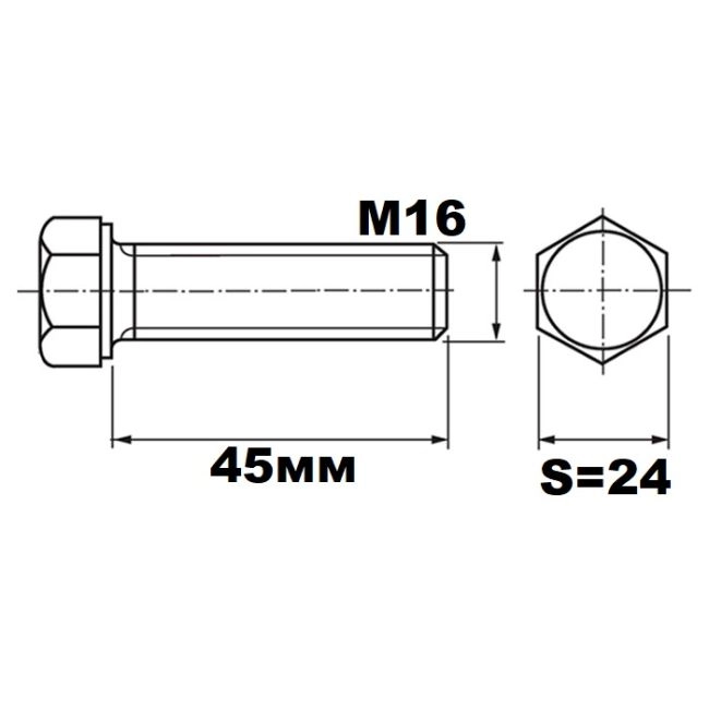 Болт М16х45 DIN933 кл.п. 8.8 оцинкованный SW 24 с шестигранной головкой из нержавеющей стали применяется на промышленных производствах, в строительстве, ремонте грузового транспорта и сельхоз оборудования.