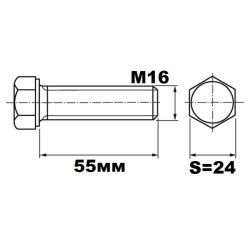 Болт М16х55 DIN933 кл.п. 8.8 оцинкованный SW 24