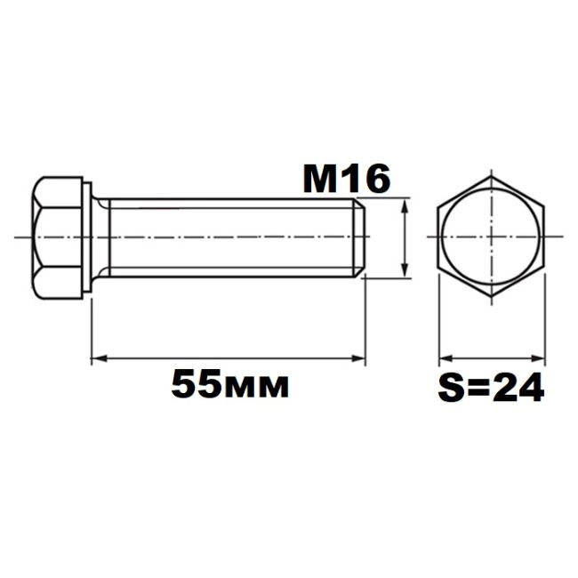 Болт М16х55 DIN933 кл.п. 8.8 оцинкованный SW 24 с шестигранной головкой из нержавеющей стали применяется на промышленных производствах, в строительстве, ремонте грузового транспорта и сельхоз оборудования.