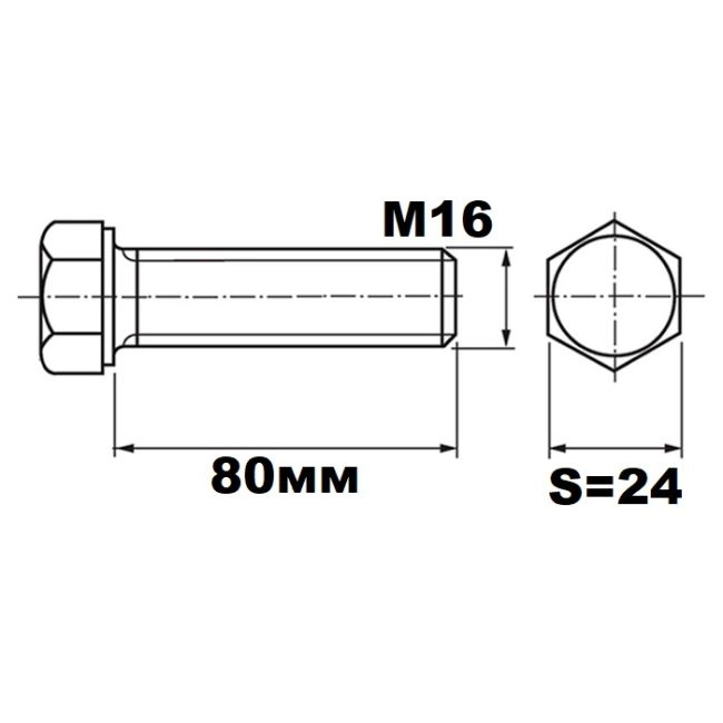 Болт М16х80 DIN933 кл.п. 8.8 оцинкованный SW 24 с шестигранной головкой из нержавеющей стали применяется на промышленных производствах, в строительстве, ремонте грузового транспорта и сельхоз оборудования.
