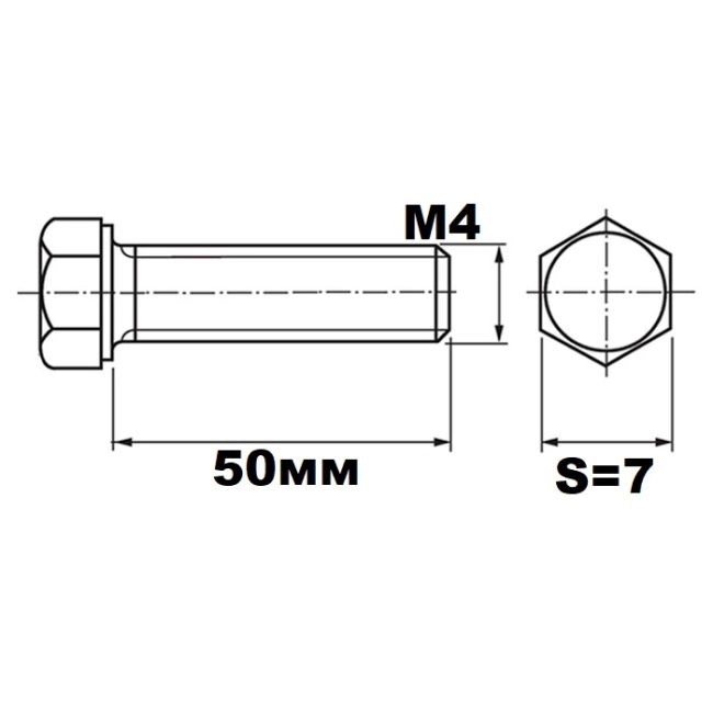 Болт М4х50 DIN933 кл.п. 8.8 оцинкованный SW 7