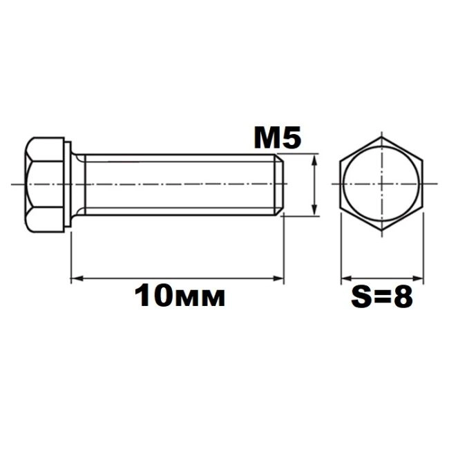 Болт М5х10 DIN933 А2-70 SW 8