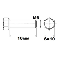 Болт М6х10 DIN933 кл.п. 10.9 оксидированный SW 10
