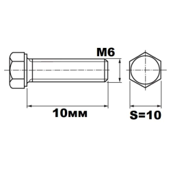 Болт М6х10 DIN933 кл.п. 8.8 оцинкованный SW 10
