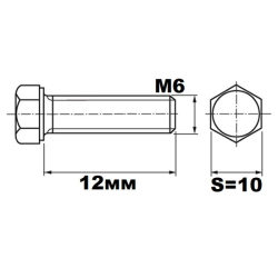Болт М6х12 DIN933 кл.п. 8.8 оцинкованный SW 10