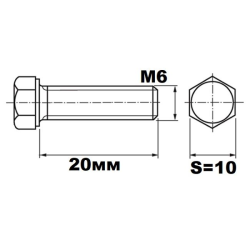 Болт М6х20 DIN933 кл.п. 8.8 оцинкованный SW 10