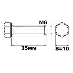 Болт М6х35 DIN933 кл.п. 8.8 оцинкованный SW 10