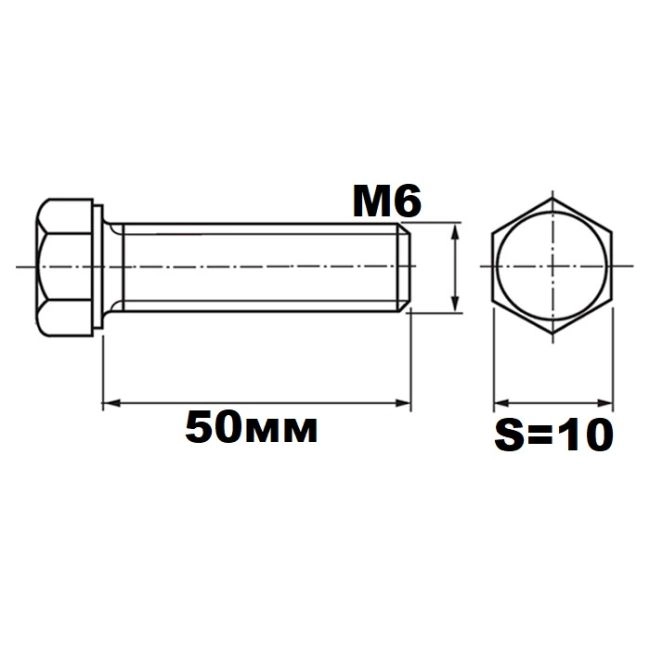 Болт М6х50 DIN933 кл.п. 8.8 оцинкованный SW 10