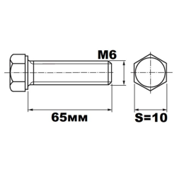 Болт М6х65 DIN933 кл.п. 8.8 оцинкованный SW 10