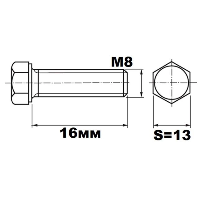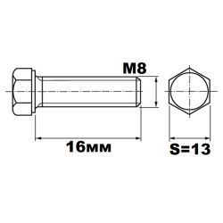 Болт М8х16 DIN933 кл.п. 8.8 оцинкованный SW 13