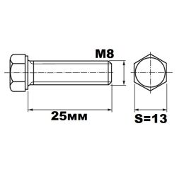 Болт М8х25 DIN933 A2-70 SW 13 с шестигранной головкой из нержавеющей стали применяется на промышленных производствах, в строительстве, ремонте грузового транспорта и сельхоз оборудования.