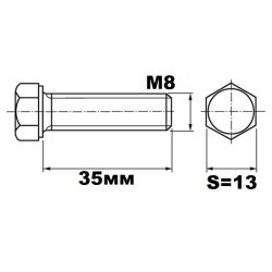 Болт М8х35 DIN933 кл.п. 8.8 оцинкованный SW 13