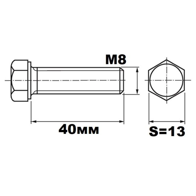 Болт М8х40 DIN933 A2-70 SW 13 с шестигранной головкой из нержавеющей стали применяется на промышленных производствах, в строительстве, ремонте грузового транспорта и сельхоз оборудования.