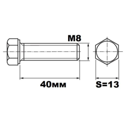 Болт М8х40 DIN933 кл.п. 8.8 оцинкованный SW 13