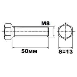Болт М8х50 DIN933 A2-70 SW 13 с шестигранной головкой из нержавеющей стали применяется на промышленных производствах, в строительстве, ремонте грузового транспорта и сельхоз оборудования.