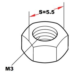 Гайка М3 DIN934 A2 SW 5.5 из нержавеющей стали под ключ: SW 5.5 с классом прочности применяется на промышленных производствах, в строительстве, ремонте грузового транспорта и сельхоз оборудования.