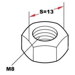 Гайка М8 DIN934 A2-70 SW 13 из нержавеющей стали под ключ: SW 13 с классом прочности применяется на промышленных производствах, в строительстве, ремонте грузового транспорта и сельхоз оборудования.