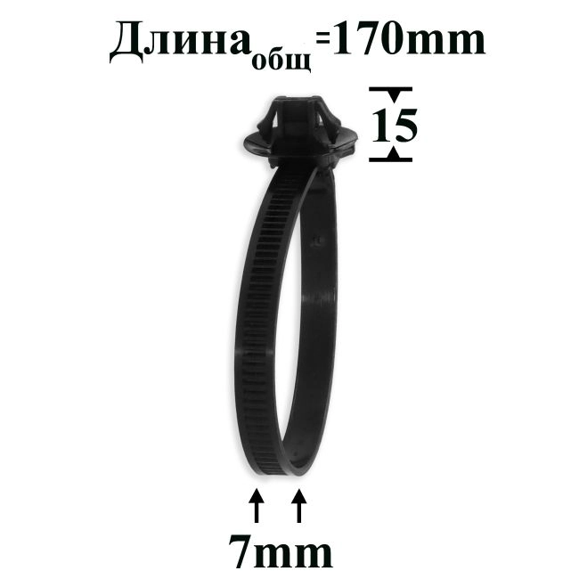 Хомут пластиковый с клипсой 7х170 мм крепления кабелей и проводов