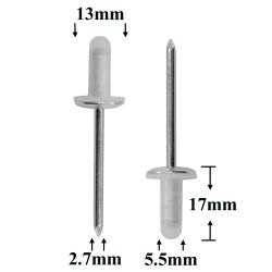 Заклепки 5,7×14,5 металлические — это универсальный вытяжной крепёж для неразъёмного соединения металлических и пластиковых деталей. Она применяется в кузовных и ремонтных работах, а также при сборке салонных элементов автомобиля.