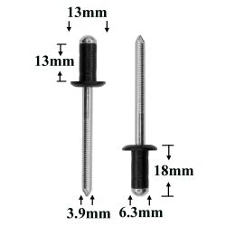 Заклепки 5,7×16,5 металлические — это универсальный вытяжной крепёж для неразъёмного соединения металлических и пластиковых деталей. Она применяется в кузовных и ремонтных работах, а также при сборке салонных элементов автомобиля.