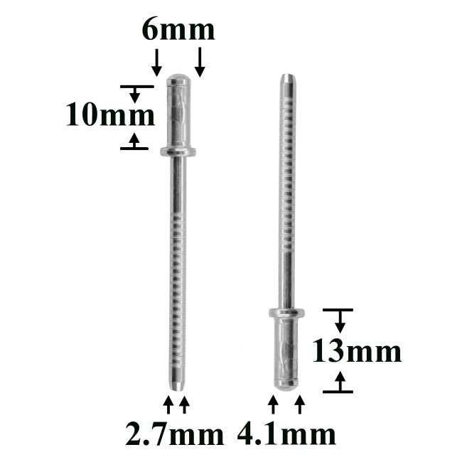Заклепки 4×11,5 металлические — это универсальный вытяжной крепёж для неразъёмного соединения металлических и пластиковых деталей. Она применяется в кузовных и ремонтных работах, а также при сборке салонных элементов автомобиля.