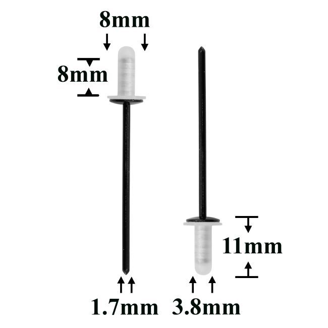 Заклепки 4×11 металлические — это универсальный вытяжной крепёж для неразъёмного соединения металлических и пластиковых деталей. Она применяется в кузовных и ремонтных работах, а также при сборке салонных элементов автомобиля.