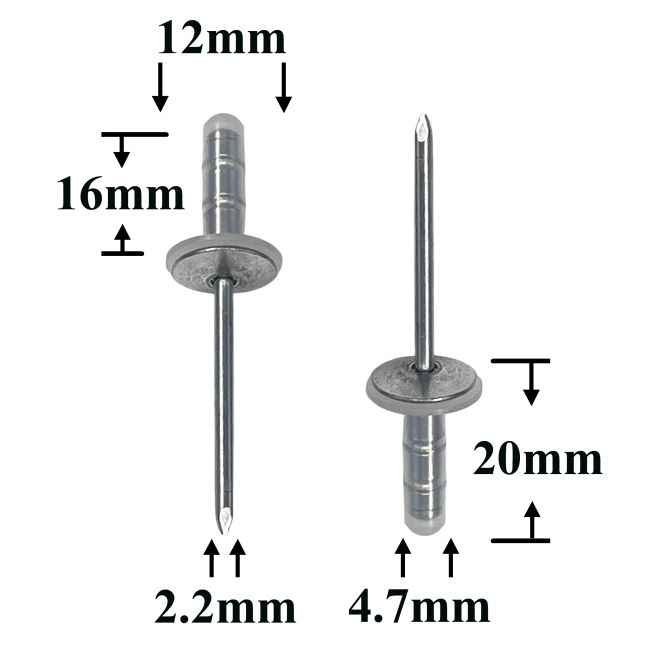 Заклепки 5×18 металлические — это универсальный вытяжной крепёж для неразъёмного соединения металлических и пластиковых деталей. Она применяется в кузовных и ремонтных работах, а также при сборке салонных элементов автомобиля.